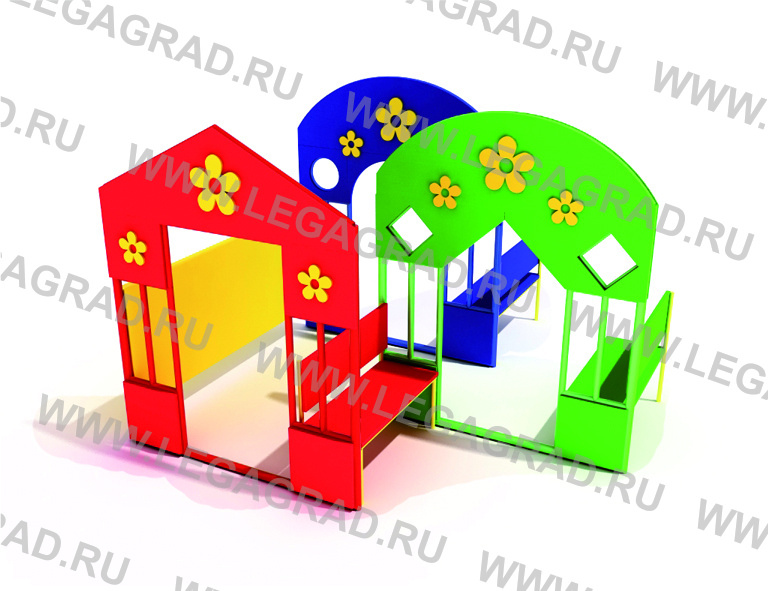 Городок предназначен для детей от 2-х до 7-ми лет. Несущие столбы выполнены из металлической трубы сечением 40х20 мм, каркас из трубы 20х20мм. Столбы бетонируются в землю. Боковые стенки, скамья со спинкой 3 шт и декоративные накладки изготовлены из влагостойкой окрашенной фанеры толщиной 18 мм. Деревянные детали тщательно отшлифованы, загрунтованы и окрашены. Металлические детали окрашены порошковыми красками.