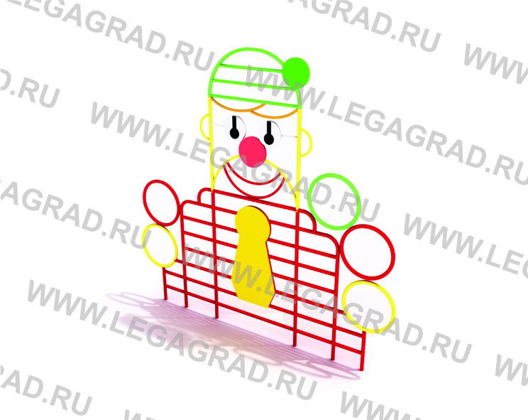 Лаз предназначен для детей от 3-х до 7-ми лет. Состоит из лаза "Клоун ". Каркас лаза выполнены из металлической трубы сечением Ø 21, 26 мм. Декоративные детали выполнены из влагостойкой фанеры толщиной 18 мм. Стойки бетонируются в землю. Деревянные детали тщательно отшлифованы, загрунтованы и окрашены. Металлические детали окрашены порошковыми красками.