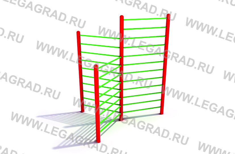 Шведская стенка .Выполнена из металлической трубы сечением Ø 57, 21 мм. Металлические элементы окрашены порошковыми красками.
