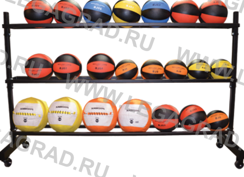 На стеллаж установлены колесные опоры с тормозами. Вы легко сможете перемещать стеллаж с мячами по спортивному залу.