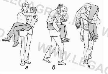 На манекене можно отрабатывать следующие способы транспортировки пострадавшего