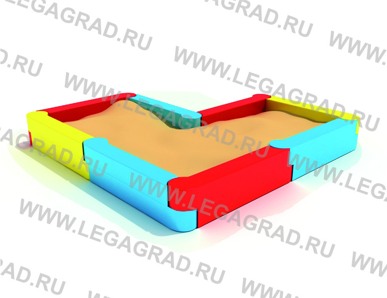 Песочница предназначена для детей от 1-го года. Песочница высотой 0,3м выполнена пластиковых элементов, соединенных по углам металлическими трубками длиной 0,4м. Металлические детали окрашены порошковыми красками.