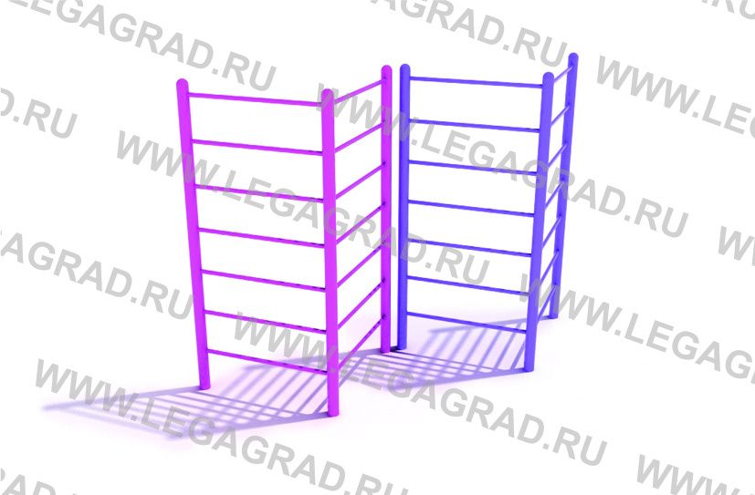 Шведская стенка. Выполнена из металлической трубы сечением Ø 57, 26, 21 мм. Металлические элементы окрашены порошковыми красками.