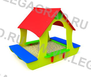 Песочница предназначена для детей от 1-го года. Общая высота 1,5 м. Песочница высотой 0,3м выполнена из доски камерной сушки толщиной 35 мм. Пластиковые заглушки на местах болтовых соединений. Деревянные детали тщательно отшлифованы, загрунтованы и окрашены.