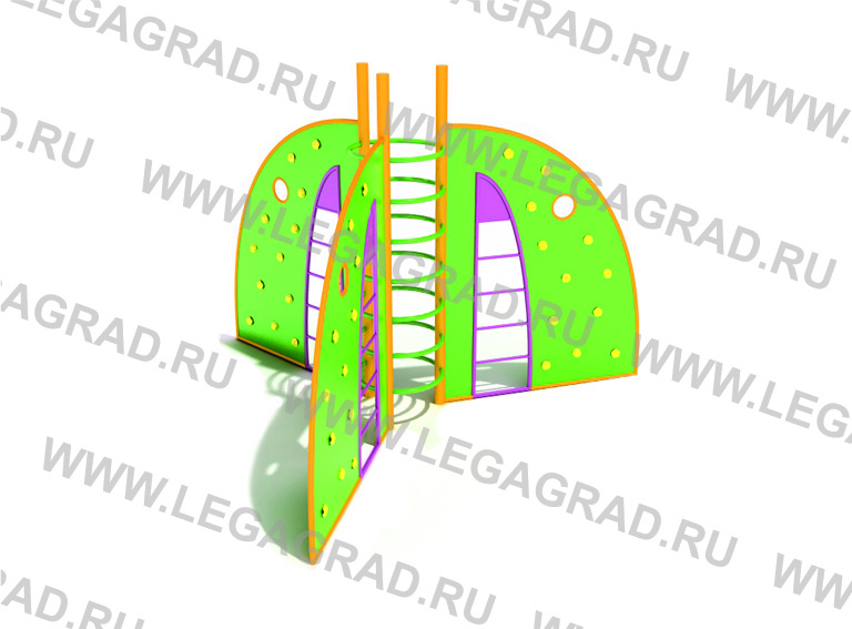 Скалолаз с зацепами предназначены для детей от 7-х до 14-ти лет. Изготовлены из влагостойкой окрашенной фанеры толщиной 18 мм. Металлический каркас из трубы сечением 40х20мм. Несущие стойки выполнены из металлической трубы сечением Ø 57 мм. Фанерные детали тщательно отшлифованы, загрунтованы и окрашены профессиональными красками. На фанере установлены зацепы для скалалазанья. Ножки бетонируются в землю.