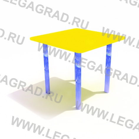 Стол квадратный на 4-х опорах предназначен для детей от 3-х до 9-ти лет. Изготовлен из влагостойкой окрашенной фанеры толщиной 18 мм на металлическом каркасе из трубы сечением 40х20мм. Фанерные детали тщательно отшлифованы, загрунтованы и окрашены профессиональными красками. Ножки бетонируется в землю. Возможно изготовление скамеек для монтажа к полу веранды.