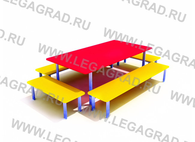 Стол и скамейки предназначены для детей от 3-х до 9-ти лет. Изготовлены из влагостойкой окрашенной фанеры толщиной 18 мм на металлическом каркасе из трубы сечением 40х20мм. Фанерные детали тщательно отшлифованы, загрунтованы и окрашены профессиональными красками. Ножки бетонируется в землю. Возможно изготовление скамеек для монтажа к полу веранды.