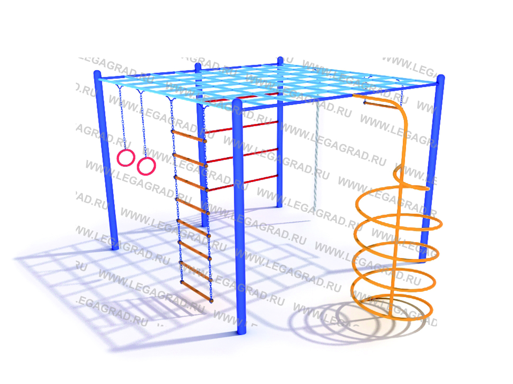 Спортивный комплекс. Выполнен из металлической трубы сечением Ø 57, 26, 21мм. Металлические элементы окрашены порошковыми красками.