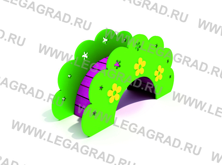 Игровая форма для детей от 3 до 7 лет. Состоит из боковых стенок, декоративных накладок изготовленных из влагостойкой фанеры толщиной 18мм и лаза - мостик выполненного из доски камерной сушки толщиной 35мм. Стойки и каркас мостика выполнены из металлической трубы 40х20мм. Стойки бетонируются. Деревянные детали тщательно отшлифованы, загрунтованы и окрашены. Металлические детали окрашены порошковыми красками.