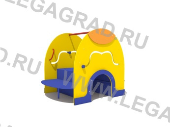 Игровая форма для детей от 3 до 7 лет. Состоит из боковых стенок изготовленных из влагостойкой фанеры толщиной 18мм. В стенке имеются сквозные пазы, в которые вставлены передвижные пластиковые элементы. С внешней стороны на боковые стенки крепятся декоративные фанерные накладки толщиной 18мм. С внутренней стороны крепятся ручки 4шт и металлическая перекладина 1шт сечением 21мм. Ступени и площадка выполнены из влагостойкой фанеры с сеткой толщиной 15мм. Стойки выполнены из металлической трубы 40х20мм которая бетонируется. Деревянные детали тщательно отшлифованы, загрунтованы и окрашены. Металлические детали окрашены порошковыми красками.