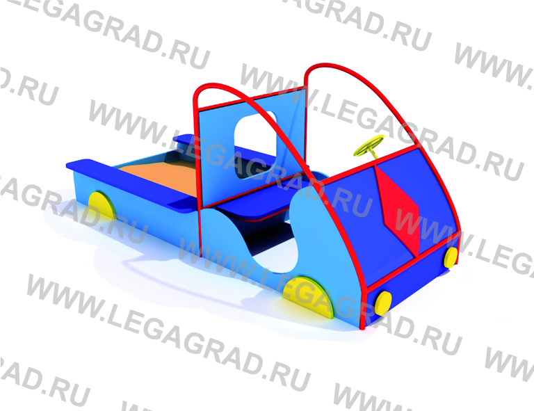 Песочница грузовик предназначена для детей от 3-х до 7-ми лет. Песочница высотой 0,3м выполнена из доски камерной сушки толщиной 35 мм в количестве: 8 шт. (боковые), соединенной по углам металлическими уголками 0,4м. Наличник 4 шт. из доски 20мм. Кабина грузовика выполнена из металлической трубы сечением 40х20, 20х20мм. Боковые стенки кабины, крыша, скамья из влагостойкой фанеры толщиной 18мм. Кабина комплектуется крутящимся пластиковым рулем. Деревянные детали тщательно отшлифованы, загрунтованы и окрашены. Металлические детали окрашены порошковыми красками.