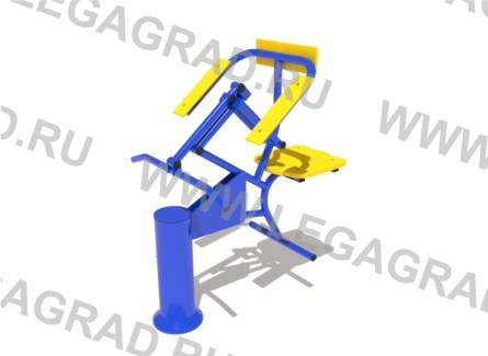 Бицепс машина. Предназначен для тренировки и укрепления мышц и суставов рук. Занятия на тренажере позволяют ускорить кровообращение в этих областях тела, обеспечивают интенсивное обогащение мышц кислородом. Несущая стойка тренажера выполнена из трубы сечением Ø 110 мм, бетонируется в землю на 0,6м., стойка закрыта пластиковой заглушкой. Ручки из трубы сечением Ø 26 мм.