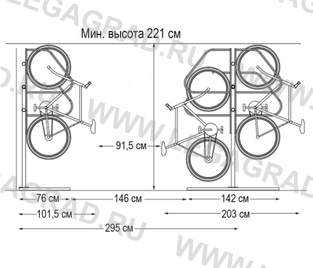 Материал – сталь с порошковым покрытием. Цена изготовления зависит от выбранной конфигурации заказа: количества вело мест, выбранного цвета окраски.