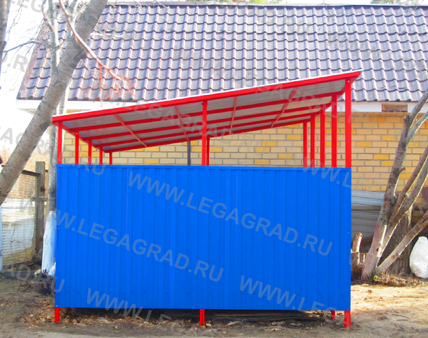 Стены выполнены из оцинкованного и окрашенного профильного листа С8 толщиной 0,5 мм. высотой 1,5м;