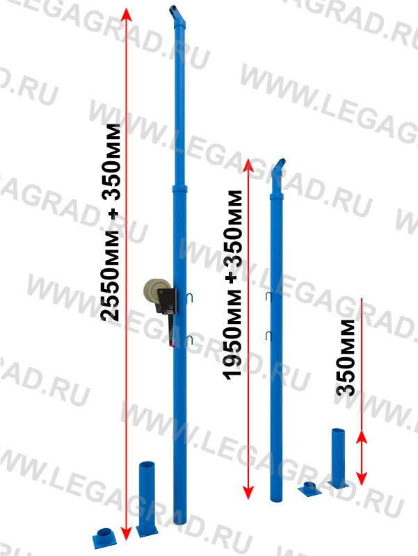 Стойки регулируются по высоте от 2000 мм до 2550 мм.