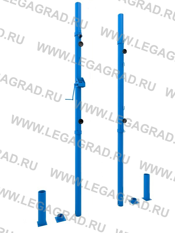 Стойки волейбольные: стаканы, передвижной механизм натяжения сетки, без сетки / пара. Материал каркаса: труба сечением Ø76мм.
