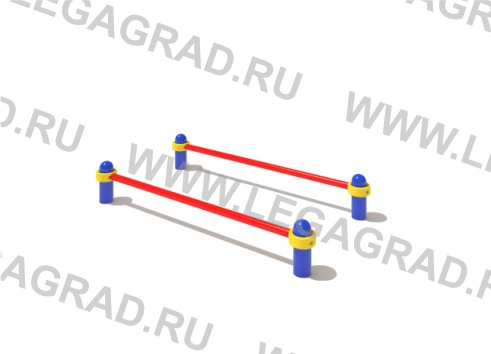 300мм х 4шт (глубина бетонирования 700мм), 2-х перекладин брусья (стальная труба диаметром 48мм, толщиной стенки 3,5мм. Длинна перекладин 1700мм. На концах перекладины отверстия под болты М10), расположенных на высоте 250мм от поверхности основания. Крепеж перекладин к вертикальным опорным столбам осуществляется при помощи хомутов, которые состоят из двух полуколец соединяемых между собой с помощью 2-х винтов М10.