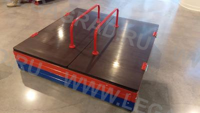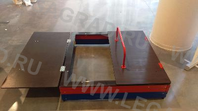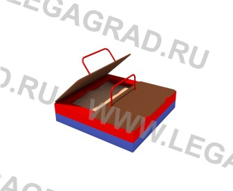 Песочница предназначена для детей от 1-го года. Песочница высотой 0,3м выполнена из доски камерной сушки толщиной 35 мм в количестве: 8 шт. (боковые), соединенных по углам металлическими уголками 0,4м. Наличник 4 шт. из доски 20мм. Крышка песочницы откидная состоит из двух частей прямоугольной формы изготовлена из ламинированной влагостойкой фанеры толщиной 15 мм крепится к каркасу песочницы на петли-навесы, на крышках установлены ручки изготовленные из металлической трубы сечением Ø 21мм по 1 шт. В открытом положении крышки встают в один уровень с песочницей. Деревянные детали тщательно отшлифованы, загрунтованы и окрашены. Металлические детали окрашены порошковыми красками.